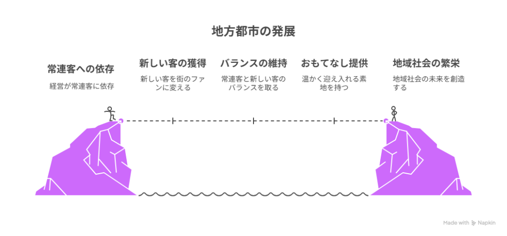 地方都市が発展するには、新しい客を街のファンに変えていく――それが地域の未来をつくるのだと思います。そのための本当の「おもてなしの心」が必要です。