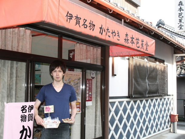 駅前を南に歩くと見える「伊賀名物かたやき 森本芭蕉堂」。100年以上続く老舗です。