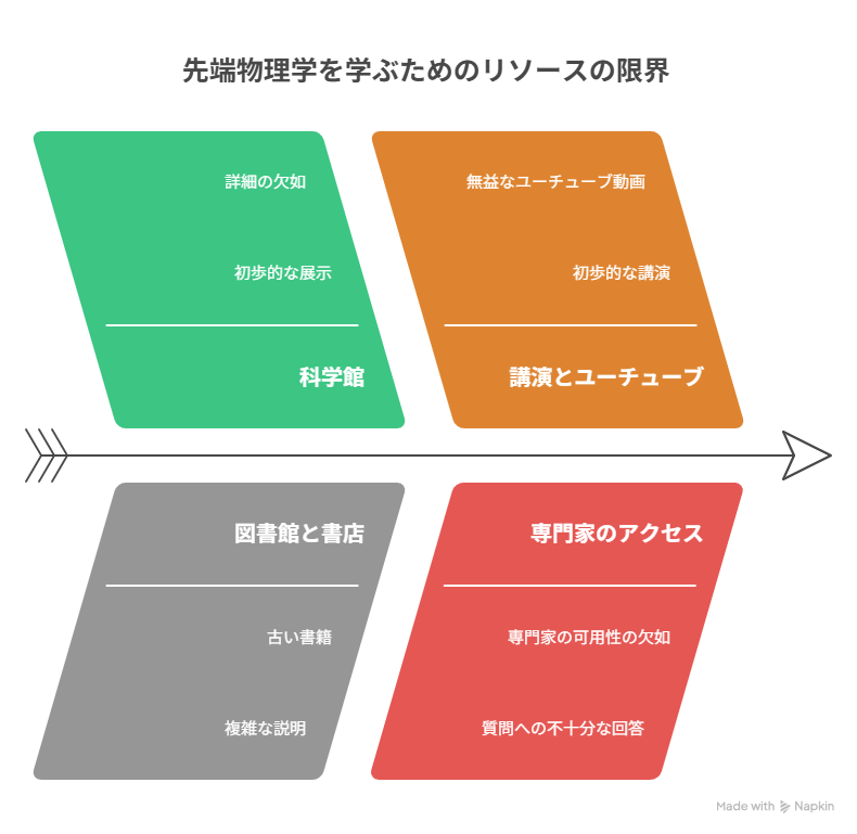 物理系ユーチューブも見ました。一部は役立ちましたが、限界があります。知りたいところや疑問に思たことは、コメント欄に質問しても返ってきたことはありません。著名人が専門家にインタビューする動画もありますが、質問者がピント外れのことばかり聞いていて理解に役立ちません。